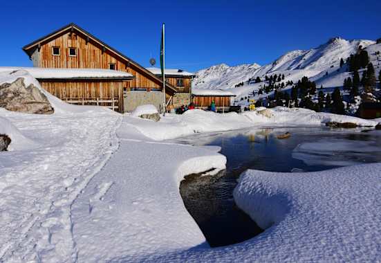 Von Dreitausendern der Ötztaler Alpen umgeben, bietet das auch als Karlsruher Hütte geläufige Haus bis weit in den Frühling hinein ausgiebige Skitouren-Möglichkeiten. Aufgetischt werden hier typische Tiroler Gerichte, deren Zutaten aus der hauseigenen Landwirtschaft stammen.