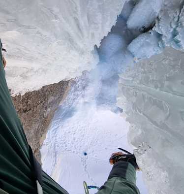 „Mein Glücksbringer ist ein Foto meiner Tochter – a ganz a herziges: 8 Monate alt mit dem Papa beim Babschwimmen... Und das begleitet mich tatsächlich. Im Herbst vergangenen Jahres habe ich einen Gast durch die Watzmann Ostwand geführt. An einer Stelle dachte ich mir „Hey da drüben ist ein cooler Tritt“ und mache einen Schritt auf die linke Seite – und in der nächsten Sekunde rauscht rechts an mir ein faustgroßer Stein vorbei. Der hätte mich problemlos aus der Wand geputzt.“