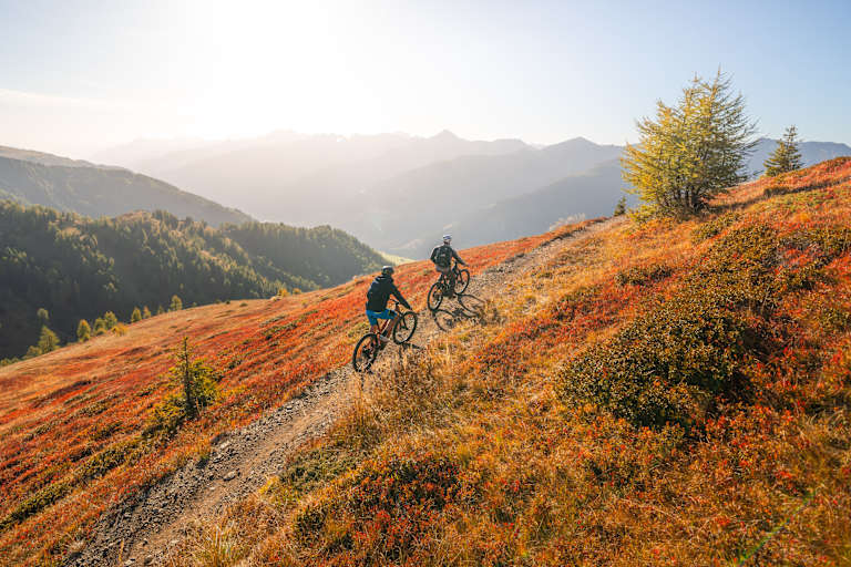 Naturbelassen biken kannst du auf einem der wohl aussichtsreichsten und schönsten Singletrails in ganz Osttirol. Der Bergwiesentrail startet eigentlich am Endpunkt der Mountainbike-Route Golzentipp am Folmasai-Sattel und endet am Gipfel des Dorfberges, kann aber in beiden Richtungen befahren werden. Der technisch nicht unanspruchsvolle Weg zwischen Obertilliach und Kartitsch liegt auf seiner ganzen Länge von 4 Kilometern auf über 2.000 m Höhe. Kein Wunder also, dass er einzigartige Ausblicke auf die umliegende Bergwelt des Karnischen Kammes eröffnet.