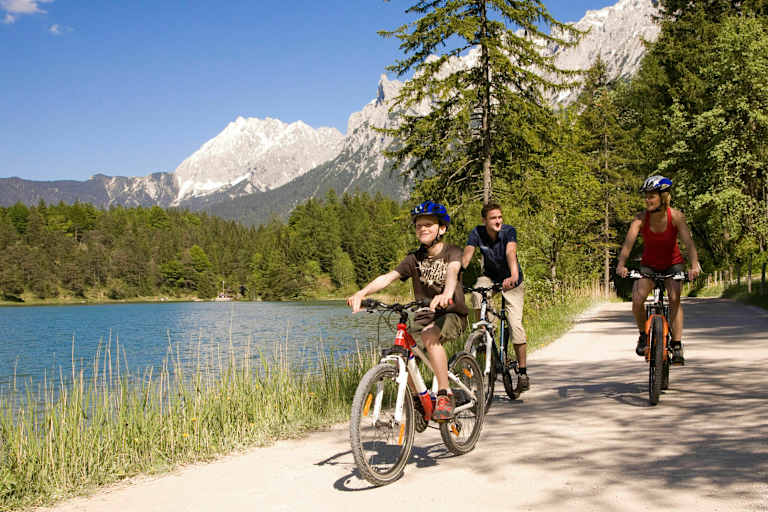 Von Mittenwald aus kann man auf den Lautersee und Ferchensee fahren. Diese Tour ist durch die wunderschönen Seen, idyllisch eingebettet in die Bergkulisse, beeindruckend. Außerdem ist die Tour auch schon von Kindern mit dem Bike bewältigbar. Wer Lust auf mehr hat, kann sich bis zur Wettersteinalpe oder dem Schachenhaus auspowern.
