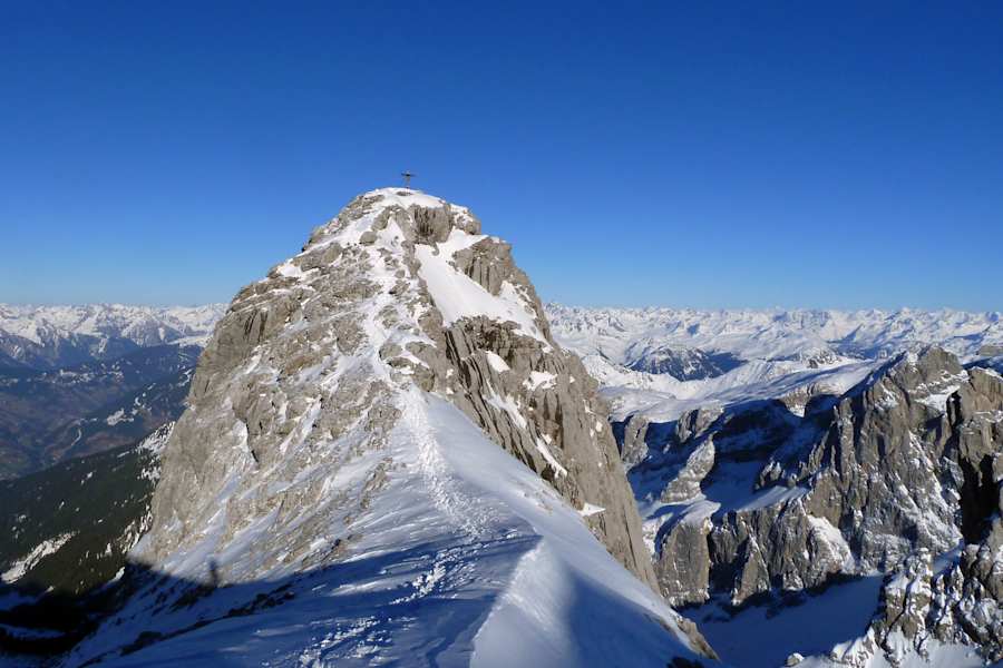 Wer möchte kann bei der Abfahrt noch einen Abstecher zum Mittleren Turm machen. Das dortige Gipfelkreuz könnte der kleine Bruder vom imposanten Großglockner-Kreuz sein und ist einen Besuch wert.