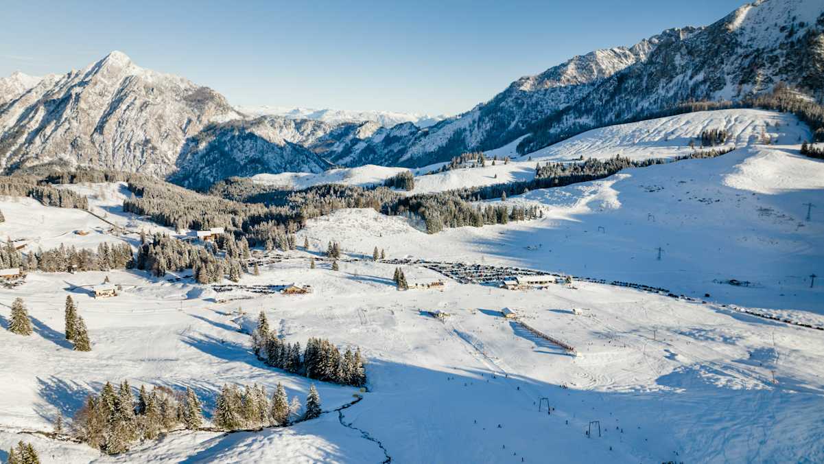 Das größte Almenplateau Österreichs beherbergt eines der kleinsten Skigebiete: Fünf Lifte und zwölf Pistenkilometer zählt die nur eine knappe Autostunde von Salzburg nahe des Wolfgangsees gelegene Postalm. Die sanften Hänge des Skigebiets ermöglichen Anfängern einen perfekten Einstieg, doch auch Fortgeschrittene kommen auf abwechslungsreichen Abfahrten mit Traum-Gipfelpanorama auf ihre Kosten – bei relativ moderaten Skipass-Preisen.