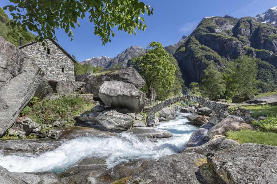 Bergwelten-Tipp: Der Kirchenbesuch lässt sich hervorragend mit einer Wanderung in der Region verbinden. Auf dem Weg von Peccia nach Fusio durchwandert man das wilde Val Lavizzara.