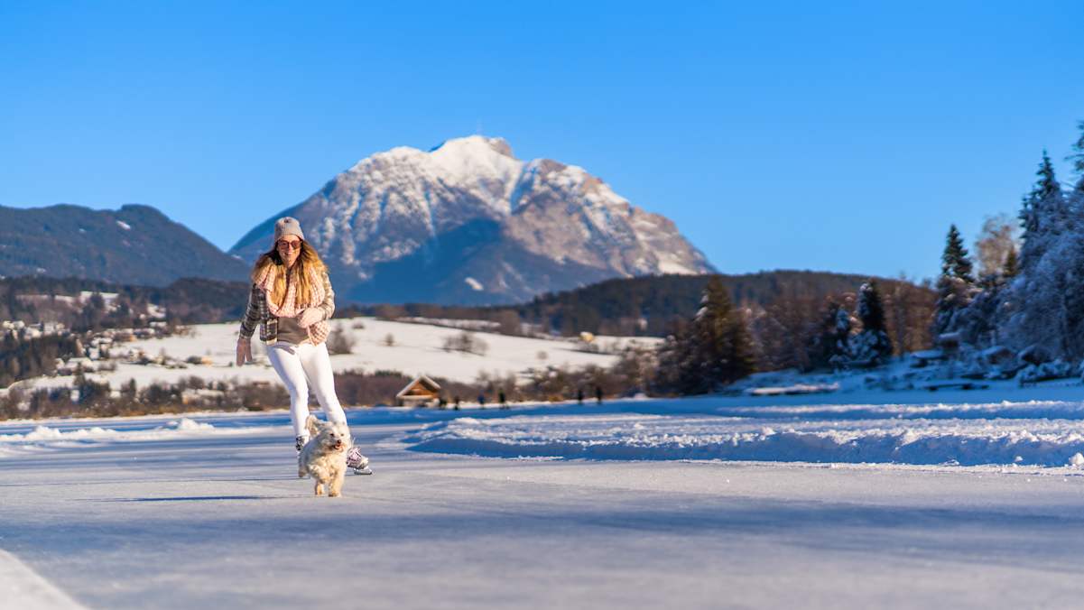 Eislaufen auf einem zugefrorenen See ist ein Erlebnis, das nur unter idealen Bedingungen möglich wird. Eiskalte Nächte und wenig Niederschlag sind entscheidend, damit sich eine ausreichend dicke Eisschicht bilden kann. Sobald diese eine Dicke von 20 Zentimetern erreicht, steht dem Vergnügen nichts mehr im Weg. Der Pressegger See ist ein echtes Naturparadies mit einem wertvollen Schilfgürtel und einer reichen Fischfauna. Im Winter, wenn er sich mit einer glatten Eisfläche bedeckt, lädt er auf 55 Hektar zu einem ganz besonderen Eislauferlebnis ein.