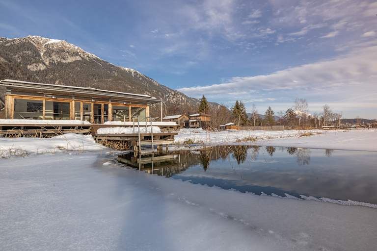 Im Lake Resort Pressegger See mitten in den Karnischen Alpen wohnen Gäste nur 15 Minuten vom Skigebiet Nassfeld entfernt und direkt am See. Die Anlage bietet neben Apartments eine SEE SPA Sauna und ist ein idealer Ausgangspunkt für Aktivitäten wie Schneeschuhwandern, Langlaufen oder gemütliche Winterspaziergänge.