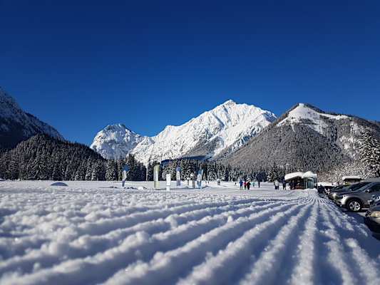 Schöne, sonnige und leichte Dorfloipe, die mit mäßigem Gefälle bis zum Fischergut am Achensee führt. Über die Wiesen im Pertisauer Ortszentrum, vorbei an der Pfarrkirche, geht es leicht bergauf retour zum Ausgangspunkt.