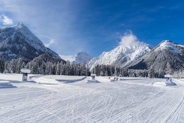 Wunderschön und sehr sonnig verläuft diese flache Strecke am Nordufer des Achensees. Auf den sieben Kilometern vorbei am Alpen Caravan Park und durch lichten Wald hinein ins Oberautal haben sowohl Anfänger als auch Fortgeschrittene ihren Spaß. Bei Schneemangel wird sie sogar beschneit.