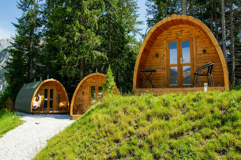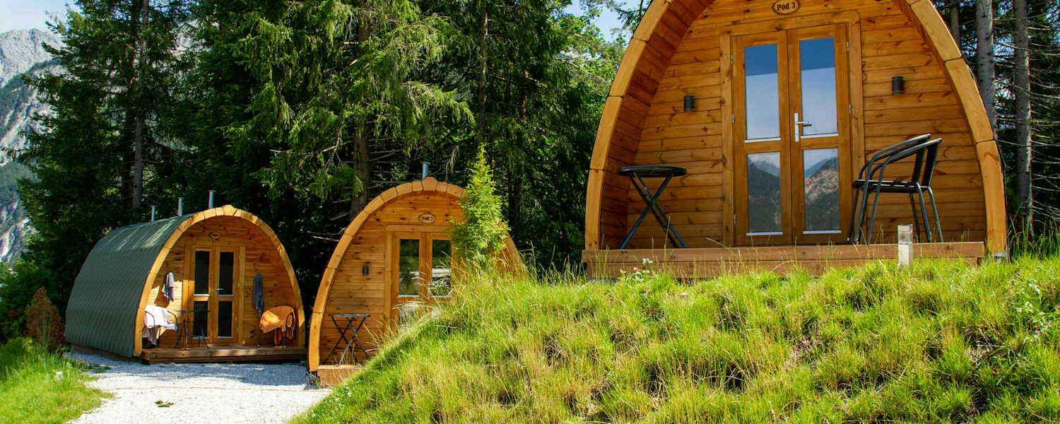 Zum Abschluss noch etwas für Abenteuerlustige: Das Karwendelcamp im Scharnitz. Der kleiner, familiär geführte Campingplatz wurde erst 2008 errichtet, die Ausstattung ist durchaus modern. Seit kurzem gibt es neben Stellplätzen für Camper und Zelte auch Camping Pod‘s – kleine, gemütliche Holzhäuschen (6 x 3 m) mit Doppelbett, Sofa, TV, Kühlschrank, Kaffeepadmaschine, Infrarotheizung und Terrasse. Hunde sind am Campingplatz jederzeit willkommen und außerdem können E-Bikes, Mountainbikes und Kinderräder bei einem öffentlichen Bikeverleih direkt am Campingplatz ausgeliehen werden – ideal, um die Karwendeltäler, die von Scharnitz aus direkt in das Herz des Naturparks Karwendel führen, zu erkunden.