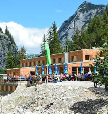 Der Aufbau der neuen Höllentalangerhütte am alten Standort im Wettersteingebirge war ein komplexes Unterfangen: 5.5 Millionen Euro kostete der Bau, der über ein Jahrzehnt der Planung erforderte. Da keine Zufahrtsstraße zur Hütte führt, musste jeder Nagel eingeflogen werden.