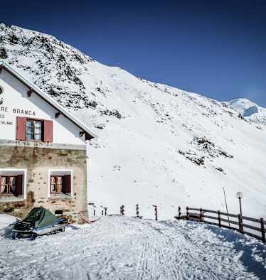 Geöffnet ist seit dem vergangenen Wochenende auch die Fornihütte (2.200 m) in der Valfurva am Fuße des Fornigletschers. Über 20 cm Neuschnee liegen in dieser Höhe, sagt der Hüttenwirt Narciso Salvadori. „Ich empfehle allen Gästen gleich am Beginn der mautpflichtigen Zufahrt die Ketten zu montieren, damit man keine bösen Überraschungen erlebt“, fügt er hinzu. Die Hütte ist ein idealer Standort für Schneeschuhtouren und Skitouren. Übrigens: Schneeschuhe kann man sich hier auch ausleihen.