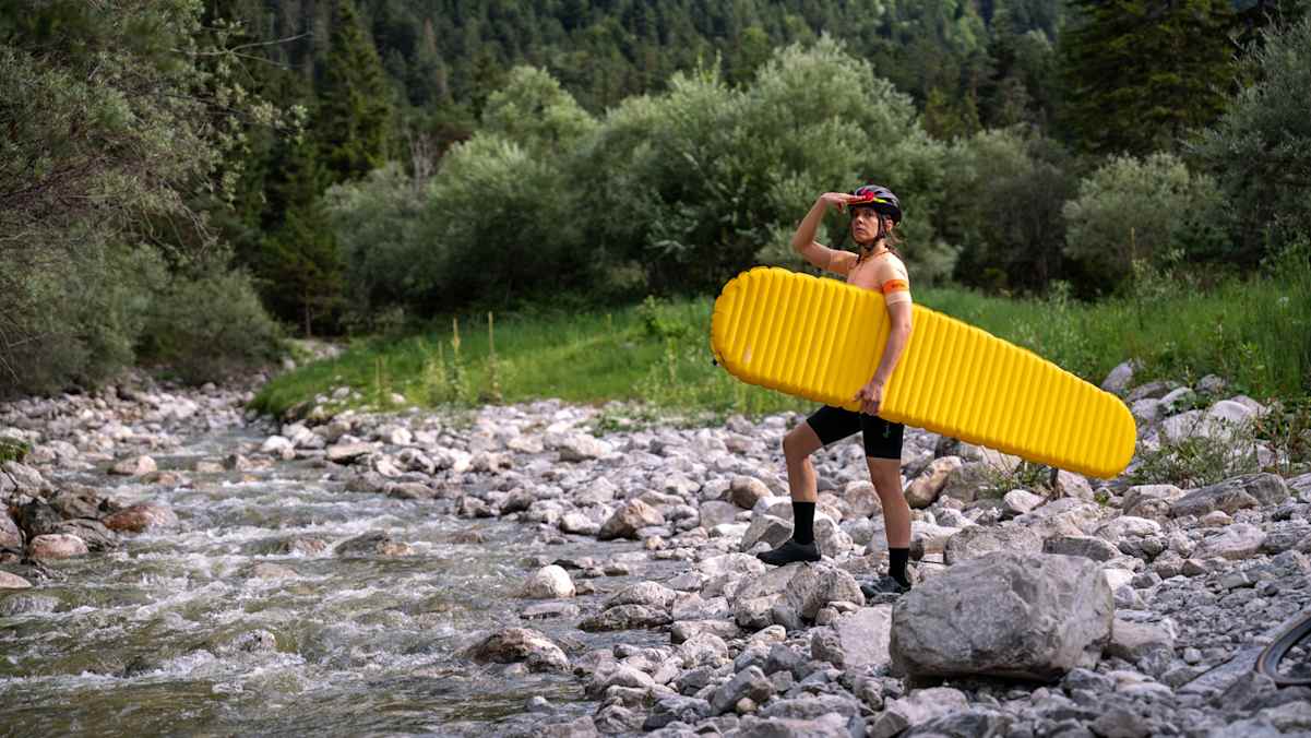 Für Bikepacking am besten geeignet, sind Isomatten zum Aufblasen, aka Thermo-Luftmatratzen. Selbstaufblasbare Luftmatratzen sind zum Beispiel viel zu groß und schwer. Bevor man zu winzigen Ultralight-Modellen greift, sollte man allerdings abwägen: