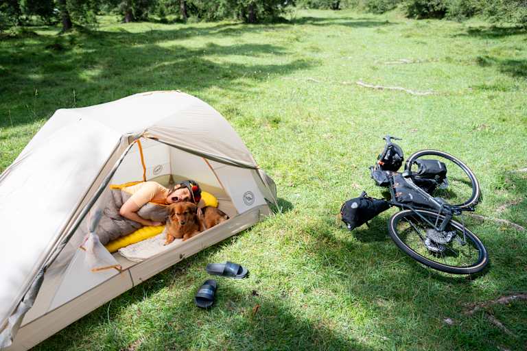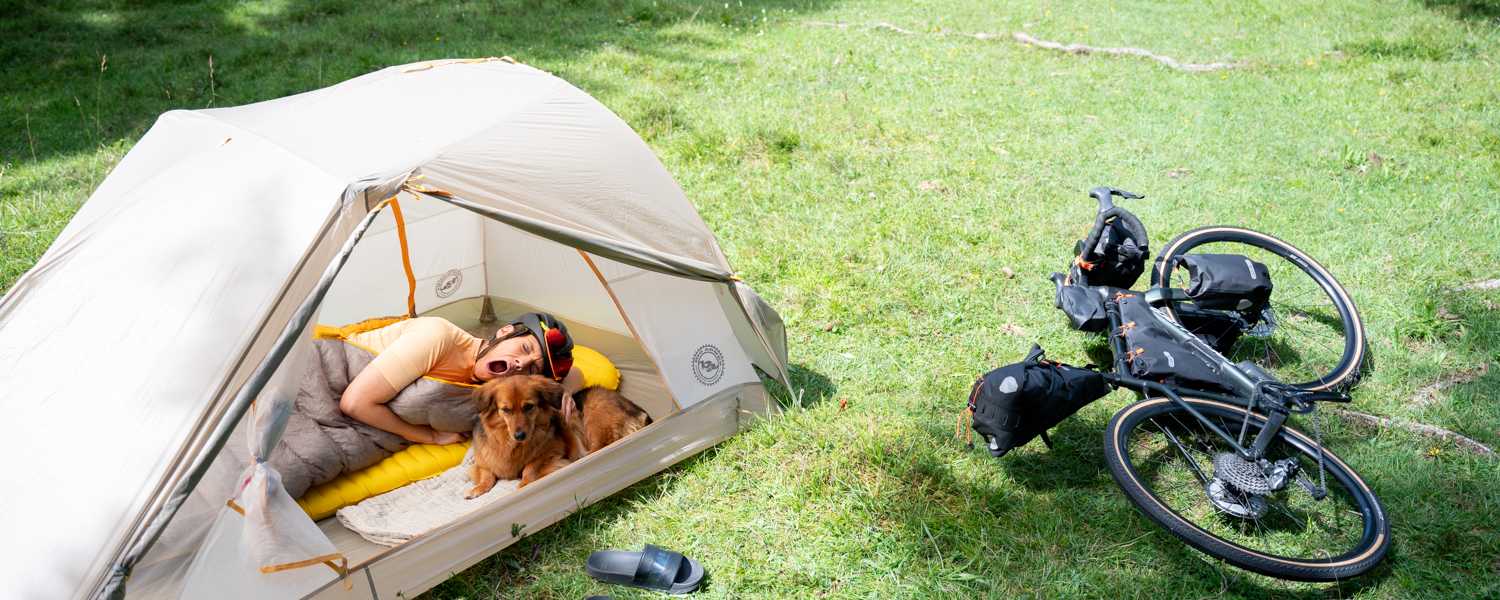 Vor ihrem ersten Bikepacking-Trip wusste unsere Autorin nicht, was anstrengender ist: Das Camping-Equipment mit den Waden fortzubewegen, oder sich bei der riesigen Auswahl an Produkten zurechtzufinden. Warum sollte man beim Zelt auf die Länge des Gestänges achten? Wieso kann eine Isomatte wichtiger für die Wärme sein als ein Schlafsack? Und warum macht Daune oder Synthetik einen wortwörtlich riesigen Unterschied? Hier gibt’s Orientierung im Camping-Produktdschungel!