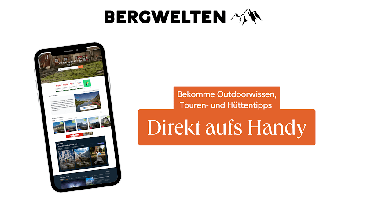 Im Bergwelten-WhatsApp-Kanal bekommst du ab sofort täglich und kostenlos Tipps für die schönsten Wanderungen und Hütten, Neuigkeiten aus der Welt der Berge sowie nützliches Outdoor-Wissen direkt auf dein Handy.