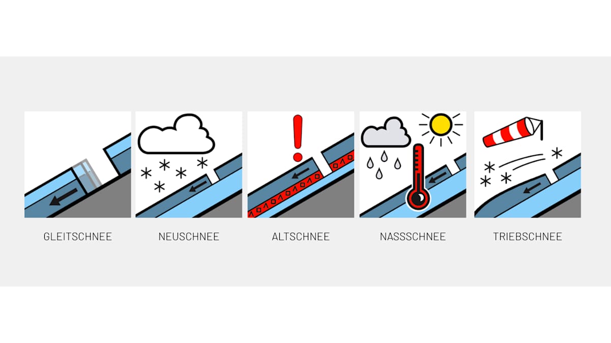 Der Schneedeckenaufbau: Wie hoch die Lawinengefahr ist, hängt stark vom Aufbau der Schneedecke ab. Gibt es schwache Schichten und wie stark ausgeprägt und verbreitet sind sie? Diese Informationen erklären, warum es gefährlich ist. Außerdem können sie, mit etwas Hintergrundwissen zu den Prozessen in der Schneedecke, Aufschluss darüber geben, ob und wo man auf der ausgewählten Tour von entsprechenden Problemen betroffen ist. Über Schneedeckentests und Schneeprofilen vor Ort kann man die Angaben überprüfen und eigene Überlegungen zur Lawinengefährdung im Gelände anstellen.