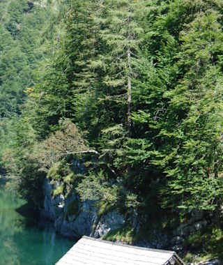 Rechts entlang der Flanke des Gosaukamm geht es hinauf zur Hofpürglhütte, die am Fusse der bekannten Bischofsmütze liegt. Außerdem führt vom vorderen Ende des Gosausees rechts der Zustieg zur Gablonzer Hütte durch den Bergmischwald aufwärts. Eine schöne Tour, die wenig frequentiert ist, da die meisten Besucher die Gosaukammbahn, die wenige Meter unter der Gablonzer Hütte endet, nutzen.