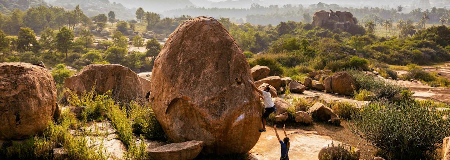 Die ersten westlichen Kletterer kamen schon Anfang der Neunziger nach Hampi. Der Grund: Rund 3.000 Granitfelsen, die die hügelige Region in Zentralindien, die eigentlich für ihre zahlreichen Tempelanlagen bekannt ist, de facto zum größten Bouldergebiet der Welt machen. In den kommenden Jahren entwickelte sich an den Ufern des Tungabhadra-Flusses eine rege Aussteiger-Szene, die aber kaum Anschluss an die lokale Bevölkerung fand. Sicher mit ein Grund für die „Vertreibung aus dem Paradies“, die ein UNESCO-Dekret über die Ausweitung der Schutzzonen endgültig besiegelte.