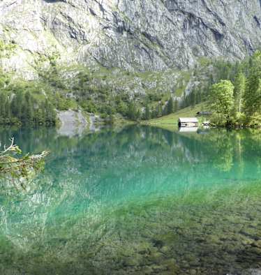 Unsere Bergwelten-Leser haben die 20 beliebtesten Hütten gewählt. Wir stellen ab sofort täglich eine davon vor. Heute: Die Fischunkelalm am Ufer des Obersees im Nationalpark Berchtesgaden in Bayern. Und hierher kommen im Sommer sogar die Kühe mit dem Boot. Idyllischer geht es kaum: Serviert wird der Seeblick mit frischer Milch und Brotzeitjaus'n.