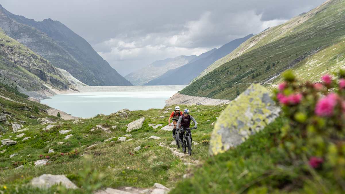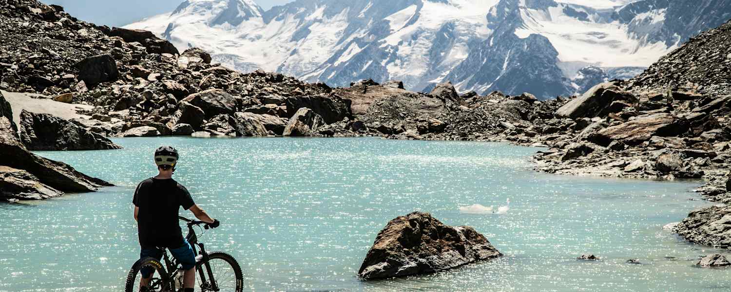Hochalpines Erlebnis im E-Bikesattel: Start ist in Saas-Balen auf 1.486 Metern. Zunächst folgt man dem Zickzackweg durch den Wald, dann führt der Trail über Alpwiesen und felsiges bis hochalpines Gelände. Die Gletscherzunge des Grüebugletschers und die Flanke des Jegihorns hat man dabei stets im Blick. Der Höhepunkt der Tour sind die malerischen Gletscherseen auf 2.862 Metern Höhe. Die Abfahrt erfolgt dann über denselben Trail zurück ins Tal.
