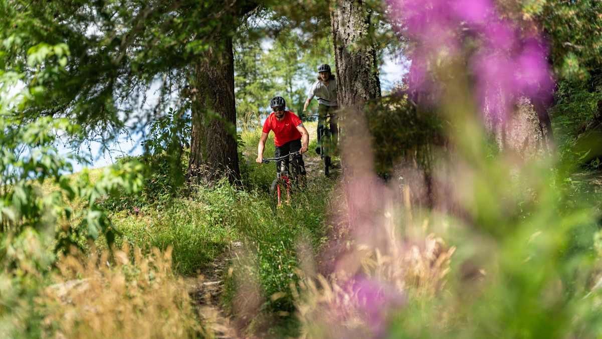 Diese Bikeroute ist ideal für Kinder und ihre Eltern. In etwa einer Stunde umrundet man auf einfachen Trails das Dorf Saas-Fee und genießt dabei die Natur und den herrlichen Ausblick auf die Berglandschaft. Am höchsten Punkt der Tour, dem Mälchbodu, findet sich mit einem großen Spielplatz, Feuerstellen und einem kleinen See der perfekte Ort für eine gemeinsame Verschnaufpause. Auch die Abfahrt bietet ein besonderes Highlight: Im Stafelwald leben nämlich zahme Murmeltiere.