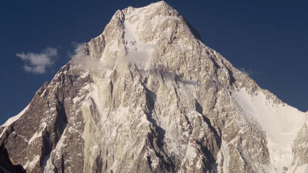 Denn um den Gipfel (rechts im Bild) zu erreichen, muss man tatsächlich gut felsklettern können – und das in fast 8.000 Metern Höhe! Ein nicht zu unterschätzender Unterschied zur steilen Schneestapferei auf den Nachbarbergen K2, Broad Peak oder den anderen Gasherbrums. Die ersten Alpinisten, die zum höchsten Punkt gelangten, waren Carlo Mauri und der große Walter Bonatti als Mitglieder einer italienischen Expedition unter Riccardo Cassin, im Jahr 1958. Ihr Weg führte über den Nordostgrat und den mit Felstürmen gespickten Gipfelgrat. Die diagonale Direttissima durch die Westwand, mit der sich 1985 Wojciech Kurtyka und Robert Schauer verewigten, gilt als Meisterwerk des Alpinstils.