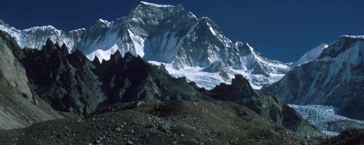 Was der Gyachung Kang für den Cho Oyu ist, ist die Annapurna II für die Annapurna I: nämlich der gegenüberliegende Ankerpunkt des jeweiligen Massivs. Im Gegensatz zur Annapurna I, die sich von allen Seiten hinter Vorbergen versteckt, ist die Annapurna II nicht zu übersehen. Sowohl vom nördlichen Manang, als auch vom südlich gelegenen Pokhara zeigt sie sich als hoch über dem Tal schwebendes Trapez. Mit einer Schartenhöhe von sagenhaften 2.437 Metern ist sie auch einer der prominentesten Ultra- Gipfel unter 8.000 Metern („Ultras“ haben eine Schartenhöhe von mehr als 1.500 Meter). Von den weitläufigen Schneefeldern und Hängegletschern, in die sie eingebettet ist, donnern oft riesige Lawinen herab. Stürme mit viel Neuschnee sind ein weiterer Grund, weshalb nur ein halbes Dutzend Seilschaften ihren Gipfel erreicht haben. Die erste war ein britisch-nepalesisches Team im Jahr 1960: Chris Bonington, Richard Grant und Sherpa Ang Nyima gelang der Aufstieg über den Nordwestgrat der Annapurna IV (links im Bild) und weiter über den Westgrat der Annapurna II. Die erste Winterbesteigung glückte dem Deutschen Philipp Kunz 2008, gemeinsam mit den Sherpas Lhakpa Wangyel, Temba Nuru und Lhakpa Thinduk.
