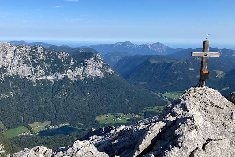 Der Schneibstein ist mit seinen 2.275 Metern Höhe ein schöner Aussichtsberg, der dank der Jennerbahn recht flott zu erreichen ist. Erst geht es durch einen Latschenwald. Später erleichtern Stein- und Holzstufen den Aufstieg durch die felsige Landschaft. Kurz vor dem recht bequemen Weg zum Gipfel eröffnet sich ein lohnender Ausblick hinüber ins Steinerne Meer.