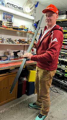 Wie man richtig wachselt, kann wohl kaum jemand besser beantworten als Max Achatz, seit 25 Jahren Chefwachsler beim Deutschen Skiverband. Der Mitfünfziger wohnt in Krün und empfängt uns dankenswerterweise zu einer kleinen Privat-Audienz, bevor es in wenigen Tagen mit dem Team wieder weiter nach Frankreich geht.