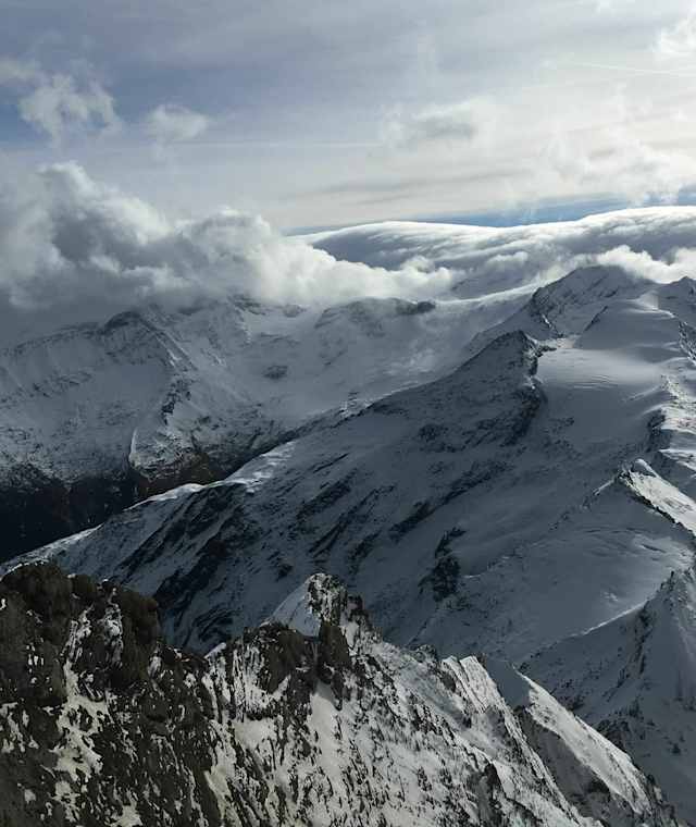 In der Gipfelstation des Kitzsteinhorns führ ein 360 Meter langer Stollen zu einer zweiten Aussichtsplattform – der Nationalpark Gallery. Von hier aus blickt man weit über die Hohen Tauern bis zum höchsten Berg Österreichs – den Großglockner.