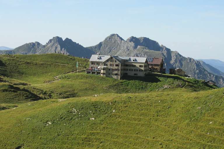 Sie liegt zwischen dem Schüsser und den Schafalpenköpfen und ist vor allem deshalb so bekannt, weil sie eine Übernachtungsmöglichkeit bietet, bevor du zu einem der spektakulärsten Klettersteige in den Allgäuer Alpen aufbrichst, dem Mindelheimer Klettersteig. Die 2.070 m hoch gelegene Fiderepasshütte erreichst du am schnellsten in etwa zwei Stunden, wenn du die Abkürzung mithilfe der Kanzelwandbahn im Kleinwalsertal nimmst. Alternativ kann man aber auch direkt vom Tal aus loswandern und erreicht die Hütte in gut drei Stunden.