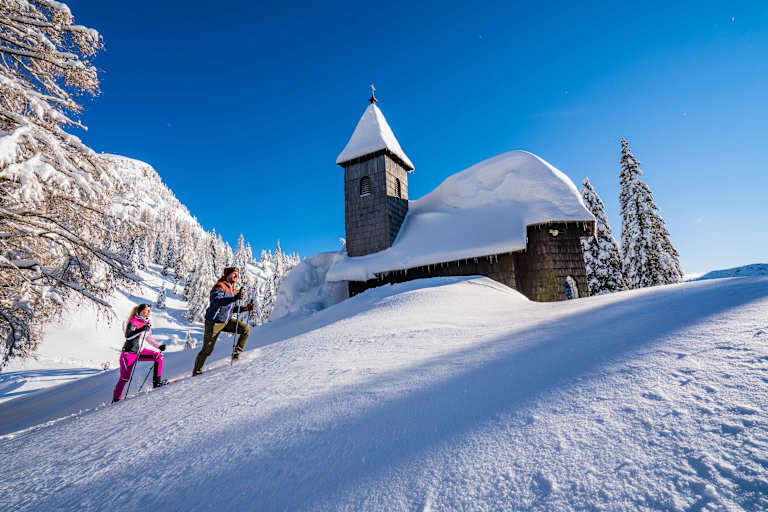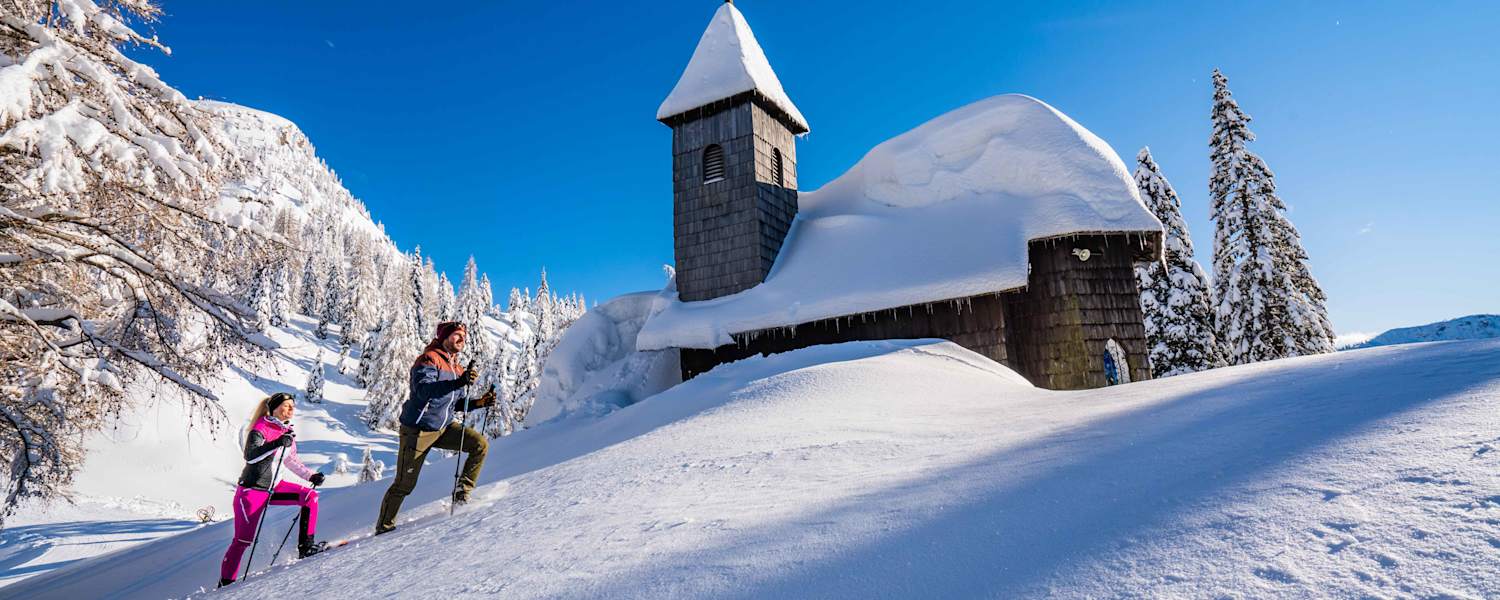 Die verschneite Winterlandschaft Südkärntens lässt sich mit Schneeschuhen auf ganz besondere Weise erleben. Vorbei an „Schneekirchen“ und Almen: Wir stellen euch drei der schönsten Touren vor.