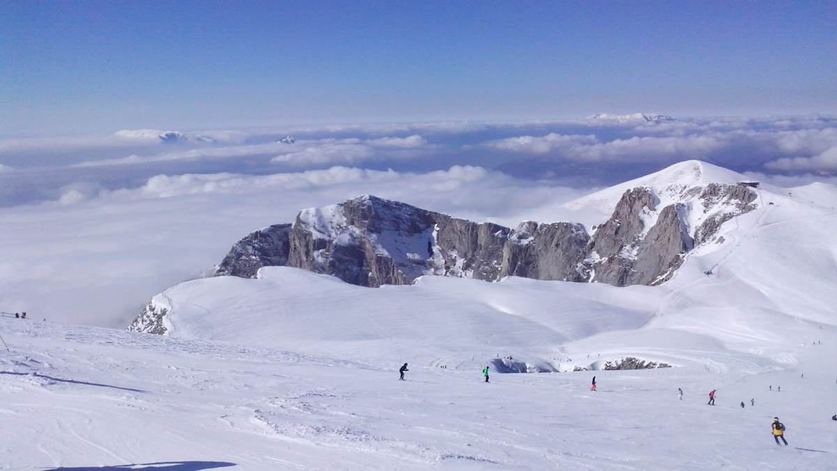 Und hier zeigt das griechische Skigebiet Falakro unweit der bulgarischen Grenze auf, wo man für eine 9 EUR-Tageskarte immerhin mit 9 Liften und auf 22 präparierten Pistenkilometern fahren kann.