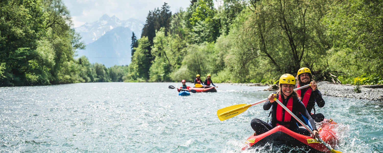 Bergsteigen kann Adrenalin pur sein – vor allem, wenn man den Gipfel erreicht. Doch an deine Grenzen kommen und gleichzeitig Spaß haben kannst du definitiv auch im Tal. Zum Beispiel beim Rafting und Canyoing auf der Iller. Mithilfe ausgebildeter Guides vom Outdoorzentrum Allgäu steuert man das Boot mit ein bis zwei Partnern selbst durch die Wellen und Stromschnellen, die Ausrüstung bekommst du vor Ort in Sonthofen. Das Gute: Die Touren finden bei jedem Wetter statt – und das kann im Allgäu bekanntlich auch verrücktspielen.