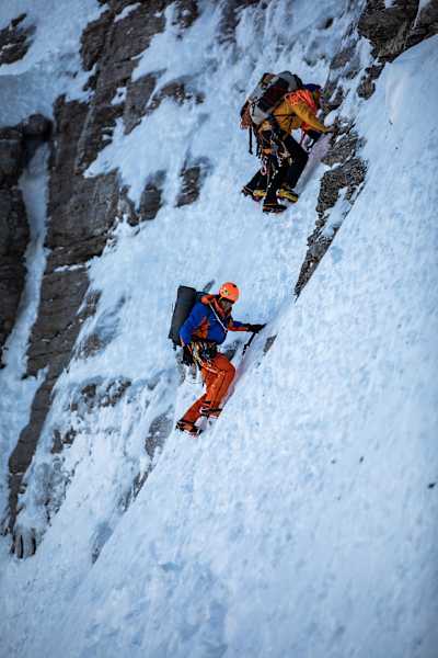 Während sich die drei durch die Wand kämpfen – die Route entpuppt sich als unerwartet schwer – erinnern sie sich an all die verstorbenen großen Kletterer, die hier in der legendären Nordwand größte Triumphe gefeiert haben, wie der Solo-Speed-Rekordhalter Ueli Steck oder der Eiskletter-Pionier Jeff Lowe. Und auch die großen Tragödien, die sich in der Eiger Nordwand abgespielt haben, sind in ihren Gedanken.