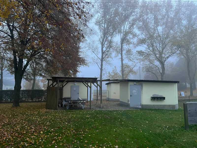 Endlich rollen wir mit Vanda auf der anderen Seite des Geschriebenstein die Serpentinen runter nach Rechnitz zum Campingplatz, der sich am Badesee befindet. Freilich sieht man ihm schon ein bisschen an, dass er sich in seinen allerletzten Öffnungstagen der Saison befindet.
