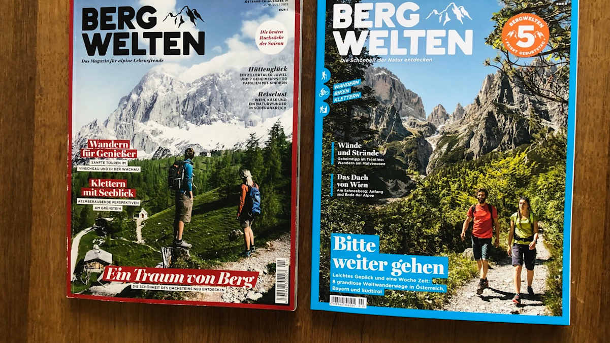 Fünf Jahre sind es schon, dass wir noch an Titeln und Bildunterschriften schraubten und feilten, bis sie dann gut genug waren für die große Premiere des ersten Bergwelten-Magazins im April 2015. Es gab ein großes Porträt des Dachsteins, es gab ein Interview mit dem Maler Herbert Brandl, es gab eine idyllische Reitgeschichte im Mühlviertel und eine spektakuläre Klettergeschichte aus der südfranzösischen Verdon-Schlucht. Es gab sechs Seiten Mode und es gab einen umfassenden Rucksacktest. Unsere Idee war einfach: Wir wollten ein Magazin machen, das die gesamte Bandbreite der Faszination der Berge abbildet. Und mit der ersten Ausgabe gelang uns das schon ziemlich gut.