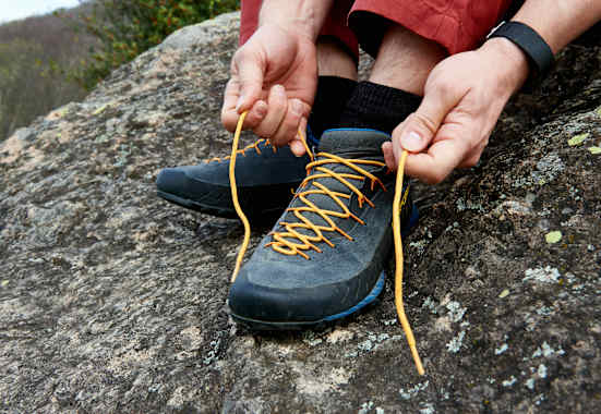 Die besten Features eines Schuhs nutzen nichts, wenn seine Form nicht zum eigenen Fuß passt. Neben dem Leisten, also dem Schnitt, ist hier die Schnürung wichtig: Lässt sie sich exakt einstellen, hat auch ein schmaler Fuß in einem eher breiten Schuh soliden Halt.