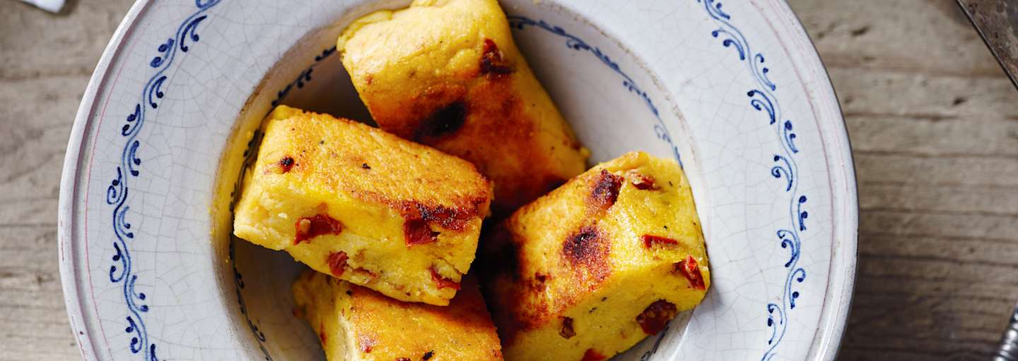 Gebratene Polentaschnitten mit getrockneten Tomaten
