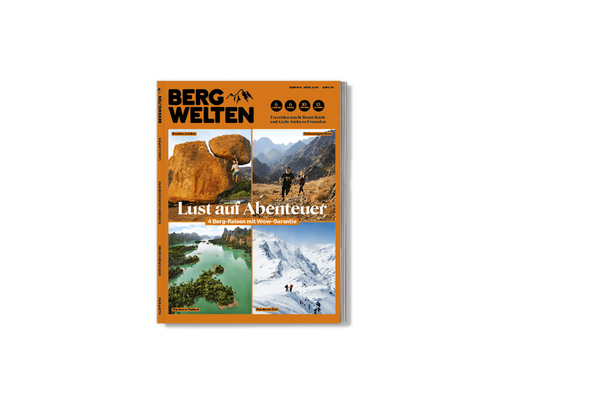 Das alpine Erlebnismagazin „Bergwelten“ richtet sich an alle, die gerne mehr über die faszinierende Welt der Gipfel erfahren möchten. Sechsmal im Jahr bietet es inspirierende Einblicke – von tiefgründigen Gipfelgespräche mit Menschen, die auf den Bergen leben oder arbeiten bis hin zu literarischen Beiträgen, in denen Schriftsteller über ihre persönlichen Höhenflüge berichten. Aber nicht nur passionierte Bergsteiger kommen bei „Bergwelten“ auf ihre Kosten: Auch Genusswanderer, Outdoor-Sportler, Familien, Modebegeisterte und Träumer finden hier spannende Inhalte. Jede Ausgabe rückt einen bestimmten Gipfel in den Alpen in den Fokus, stellt verschiedene Bergsportarten vor und testet Ausrüstung für Bergabenteuer.