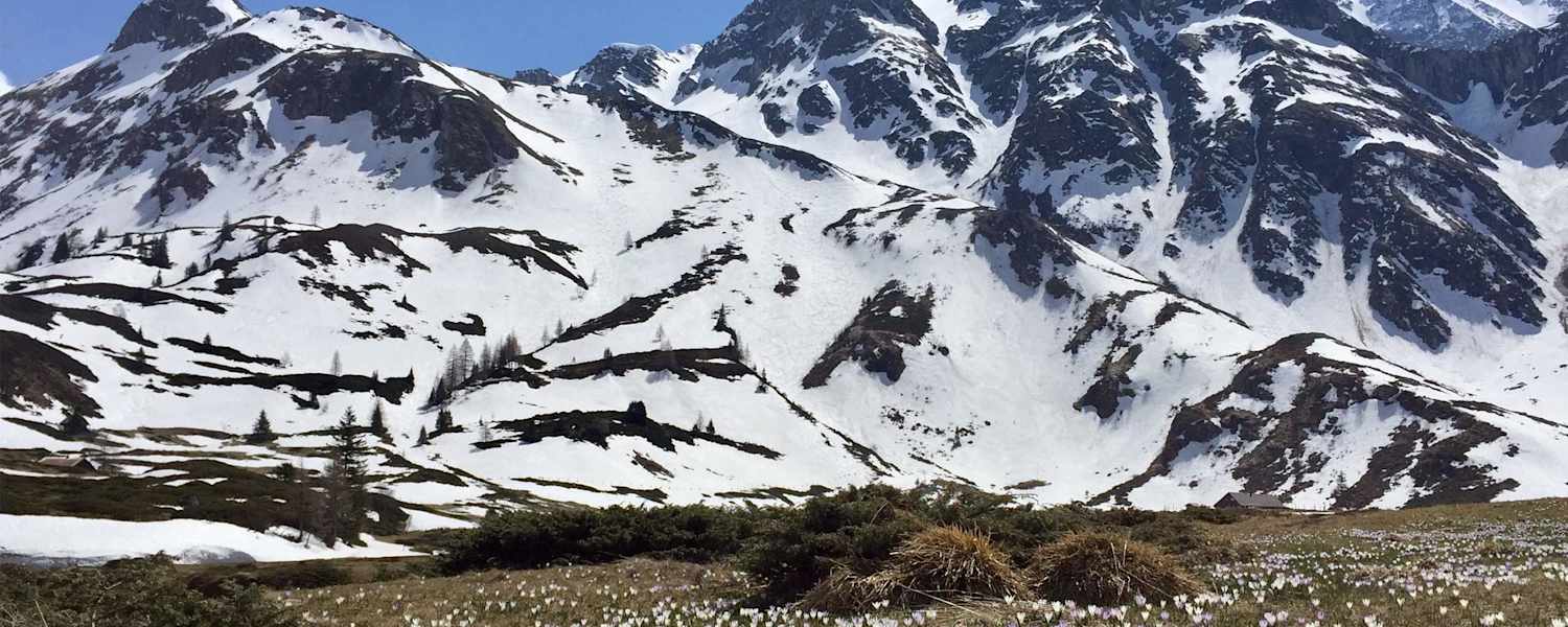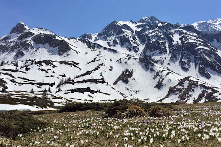 Im Frühjahr ist die Region um die Passhöhe bei Skitourengehern äußerst beliebt. Während hier oben noch tief winterliche Bedingungen herrschen, lockt das frühlingshafte Wetter im Tal schon zum Wandern.