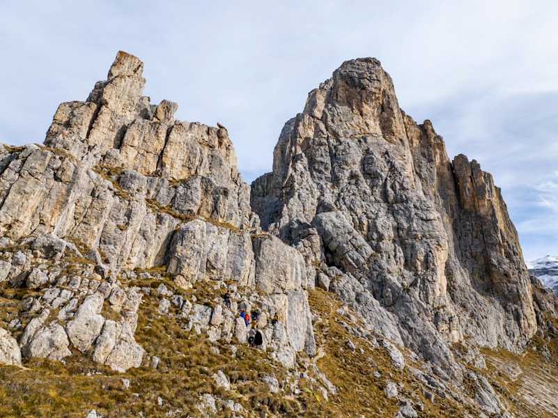 Die Sellagruppe ist ein weitläufiges Gebirgsplateau, das sich die italienischen Provinzen Südtirol, Belluno und Trentino untereinander aufteilen. Besonders markant und ein Ziel für ambitionierte Kletterer sind die Sellatürme. Jeder Turm hat seine eigene Geschichte und seinen eigenen Charakter. Gemeinsam ist ihnen eine reiche Auswahl an alpinen Kletterrouten bei angenehm kurzen Zustiegen: Die meisten Einstiege in die Touren sind vom Parkplatz am Sellajoch kaum 15 Minuten entfernt.
