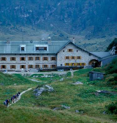 Das Kärlingerhaus könnte malerischer nicht liegen: Flankiert von den Gipfeln des Steinernen Meers, unweit vom Nationalpark Berchtesgaden und in unmittelbarer Nähe zum bezaubernden Funtensee. Hunde sind auch hier willkommen, müssen aber unbedingt vorher angemeldet werden, da maximal zwei Hunde aufgenommen werden.