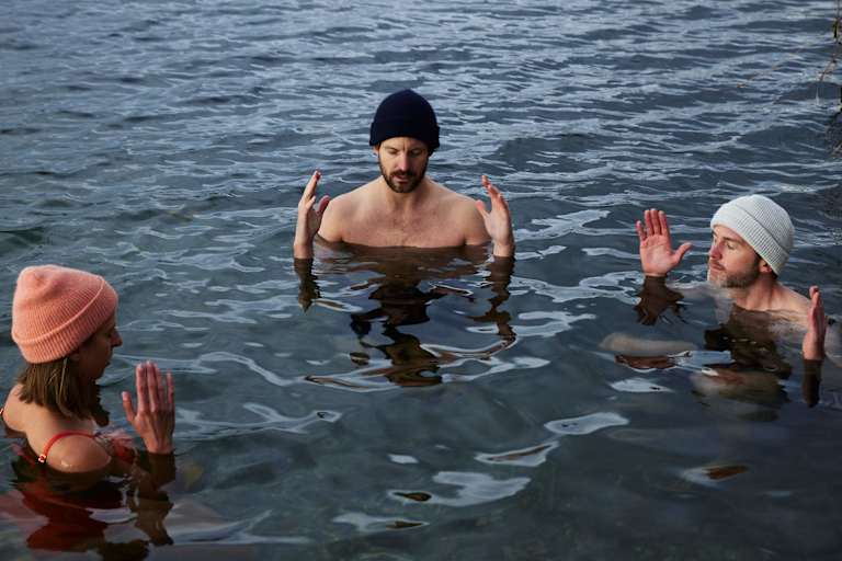 Die wichtigste Regel: Geh niemals alleine eisbaden! Trotz Vorbereitung auf das Baden im kalten Wasser besteht nämlich die Gefahr, einen Kälteschock zu erleiden. Am besten geht man deshalb zu zweit und hat für den Notfall eine Unterstützung an Land mit. Dabei nicht vergessen: Der Kopf bleibt immer trocken, da wir über diesen sehr viel Wärme verlieren. Auch Hände und Füße verlieren schnell an Körperwärme. Die Hände beim Eisbaden daher in die Luft halten und an den Füßen eventuell Neoprensocken tragen.