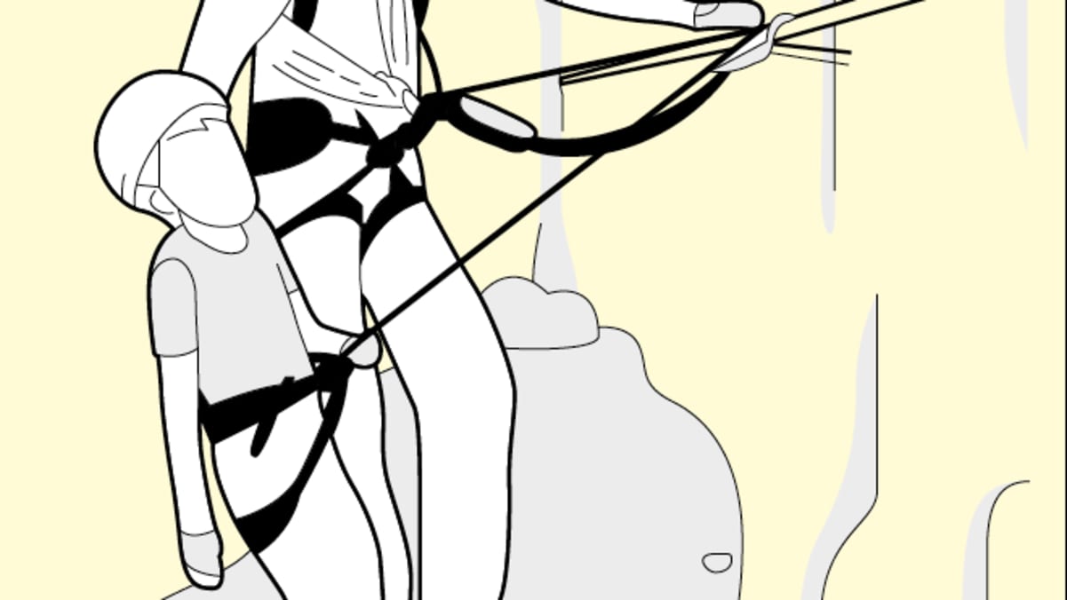 Das Kind ist am Klettersteigset gesichert und wartet vor der Steilstufe. Danach wird das Kletterseil verlängert und der Erwachsene klettert selbst voraus. Anschließend wird das Kind von einem Fixpunkt aus gesichert. Verläuft die Kletterstelle nicht in Falllinie, muss das Kind sein Klettersteigset einhängen.
