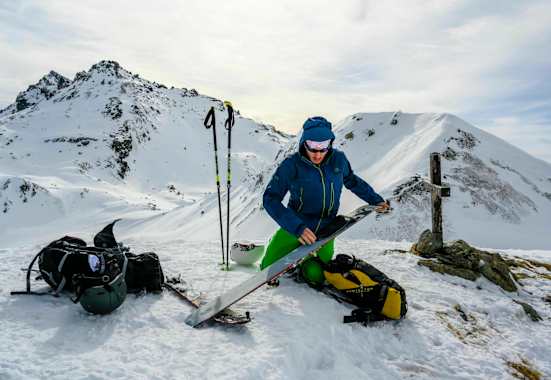 Bergführer Bernhard Egger zu seiner Tape-Leidenschaft: „Ohne Tape gehe ich nie auf den Berg. Ob ein Touren-Fell, das nicht mehr richtig klebt, ob ein Loch in der Daune, ob eine lockere Schnalle... Tape hilft immer!"