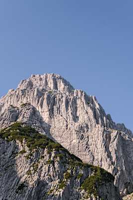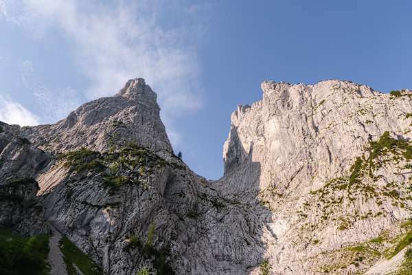 Das Totenkirchl ist auf den ersten Blick ein denkbar unnahbarer Berg. So unnahbar, dass es früher als unbesteigbar galt – und nach seiner dann doch gelungenen Erstbesteigung 1881 als „Grenze des Menschenmöglichen“. Sprich: Das Totenkirchl ist kein Wanderberg, es ist ein steiler, felsiger Koloss. Bei genauerer Betrachtung offenbaren sich jedoch drei Terrassen, drei grasige Unterbrechungen zwischen den Steilwänden. Über diese drei Terrassen muss jeder steigen, der bis zum Gipfel will. Also genau wie im Leben.