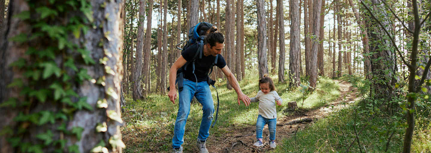 Ist man mit Kindern unterwegs, die noch nicht selbstständig sitzen können, empfiehlt es sich, mit dem Kinderwagen auf gemütlichen Forststraßen zu bleiben.
