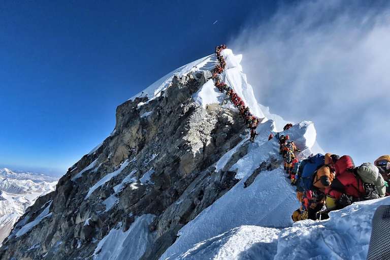 Viele Expeditionsanbieter lassen von Sherpas Unmengen an Flaschensauerstoff auf den Gipfel schleppen. An Wettertagen, die einen Aufstieg erlauben, ist mit stundenlangem, lebensgefährlichem Stau auf der Aufstiegsroute, die auch zugleich die Abstiegsroute ist, zu rechnen. Von selbstständigem Bergsteigen kann in den meisten Fällen nicht die Rede sein.