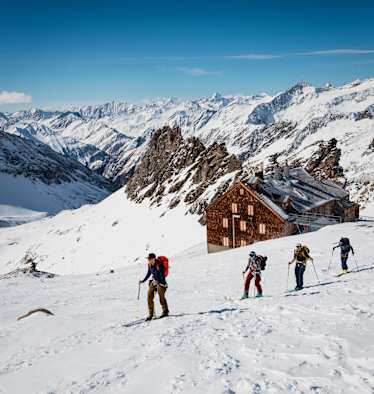 Die klassische Frühjahrsskitour folgt zunächst dem Weg vom Matraier Tauernhaus (1.512 m) ins wunderschöne – und zu dieser Zeit sehr ruhige – Innergschlöß. Danach steigt man zur Neuen Prager Hütte (2.796 m) auf. Am zweiten Tag geht es über das Schlatenkees hinauf zum Gipfel.