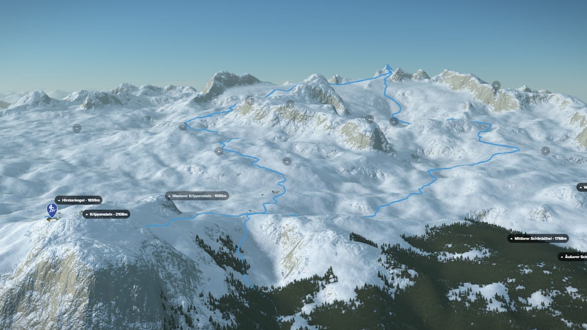 Das Dachsteinmassiv erhebt sich genau an der Grenze zwischen den Bundesländern Salzburg, Steiermark und Oberösterreich. Ausgangspunkt für die wunderschöne, aber kräftezehrende (ca. 7h) Tour ist der geschichtsträchtige Ort Obertraun in Oberösterreich. Mit der ersten Gondelfahrt (für Tourengeher im Frühjahr um 7:30 Uhr) geht es hinauf auf den Krippenstein, von wo aus per Ski in Richtung Gjaidalm (1.788 m) abgefahren wird. Nun werden die Felle angelegt und über flaches Gelände beginnt der erste Anstieg über das Hochplateau des Krippenstein. Die Bundesheerkaserne (1.832 m) wird linkerhand liegen gelassen und weiter geht es über den Rumpler, zwischen dem Niederen und dem Hohen Rumpler hindurch, zum Skigebiet Dachsteingletscher hinauf.