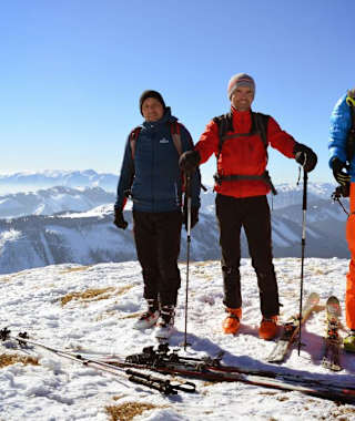 Nur die ersten paar Meter führen über die Forststraße, dann biegt man gleich scharf rechts weg um anschließend stets dem Bergrücken, zuerst durch dichteren Wald und dann über freie Flächen und Hochwälder, zu folgen. Man sollte dabei auf jeden Fall die günstigen Geländeformen entlang des Rückens ausnützen und nicht im weiten Graben aufsteigen. Die letzten Meter zum Gipfel werden noch einmal etwas steiler, bei guter Spurenwahl bleibt man aber unter 35 Grad Steigung. Vom Gipfel hat man einen wunderschönen Rundumblick – entlang des Gipfelgrates gelangt man auch einfach zum Hauptgipfel.